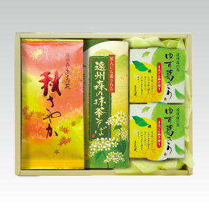 コクが深くさわやかでふくよかな風味の「秋さやか」、つるつるしたのど越しと新鮮抹茶の香りが人気の「抹茶そば」、柚子と煎茶の香り高い贅沢な「ゆず葛きり」のセットです。おさだ苑人気商品を集めました。【セット内容】※本商品は箱代を含めた金額となります。