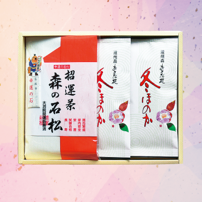 森の石松で知られる森町・大洞院にて開運祈願済みの幸運の石付きの「招運茶」と、