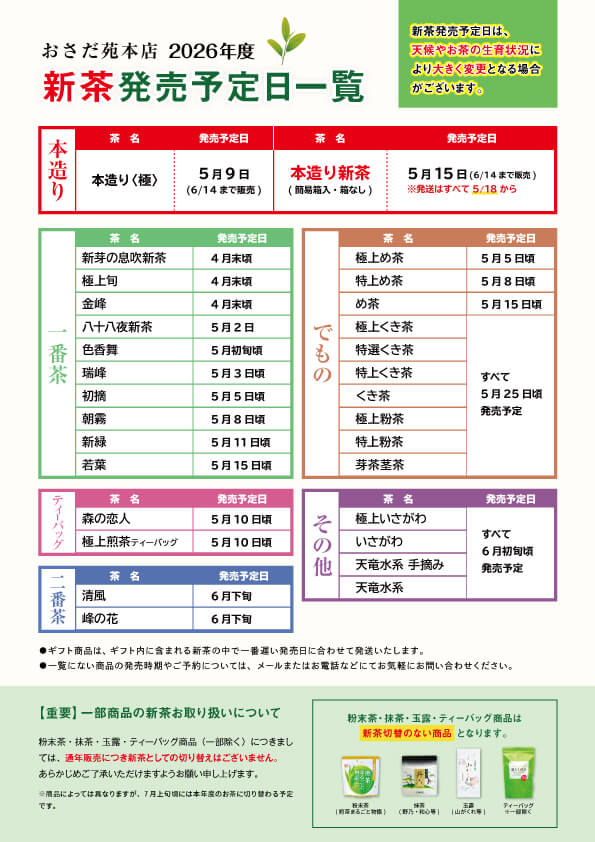 ◆ 新茶発売日は「目安」です
